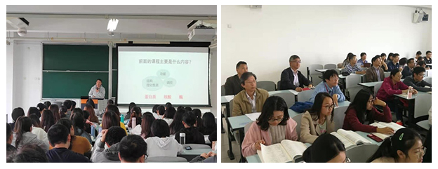2019年10月28日上午10点, 我院阳怀宇老师的教学公开课《生物化学》在闵行校区第三教学楼202教室开讲。我院党委书记党远鸿老师、常务副院长王群老师、副院长江文正老师、教学委员会教师及部分青年教师等19位老师参加了本次公开课。阳老师从对比蛋白质结构和功能入手,向学生讲解了糖化学的相关知识。课堂上,任课教师精神饱满,学生和听课教师们也都聚精会神。