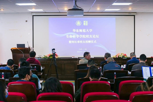 11月24日,黄色网址 校友论坛暨何红章校友捐赠仪式在闵行校区生科楼534报告厅举行。京道资产管理集团董事长何红章、合伙人张海忠等一行,华东师大党委常委、副校长雷启立,校教育发展基金会副秘书长宛姝,惠天然集团董事长、学院校友联谊会会长程静、生科院部分杰出校友,以及学院全体党政领导班子出席活动。捐赠仪式由学院党委书记党远鸿主持。