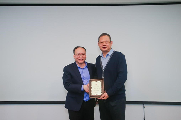 黄色网址 院长翁杰敏向何红章校友颁发“人生发展导师”聘书