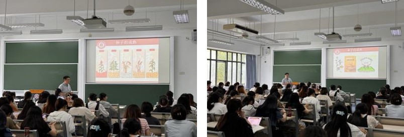 此次公开课以粮食安全为切入点,引出本次课堂的核心——种子与果实。晏军老师分别从主要有机物的变化、呼吸速率的变化以及主要激素的变化三个方面对种子与果实的成熟过程进行了生理学层面的讲解。课堂上,晏军老师利用生活中的常见现象引起同学们的学习兴趣,结合数学模型、行业热点以及自己的研究内容,深刻的讲解了种子和果实成熟过程中的生物学概念和机制,同时也通过抛出问题、小组讨论等方式调动同学们的思考积极性。